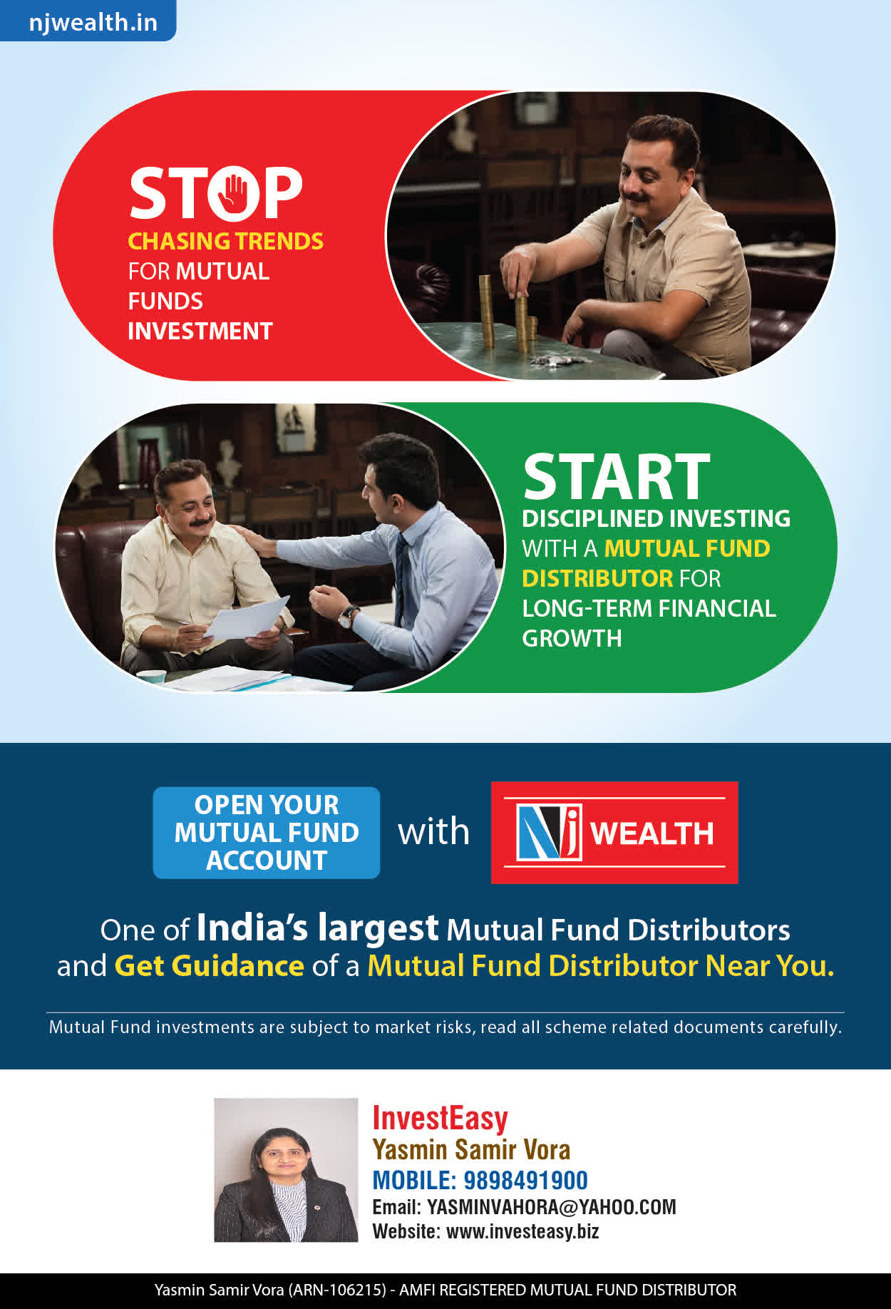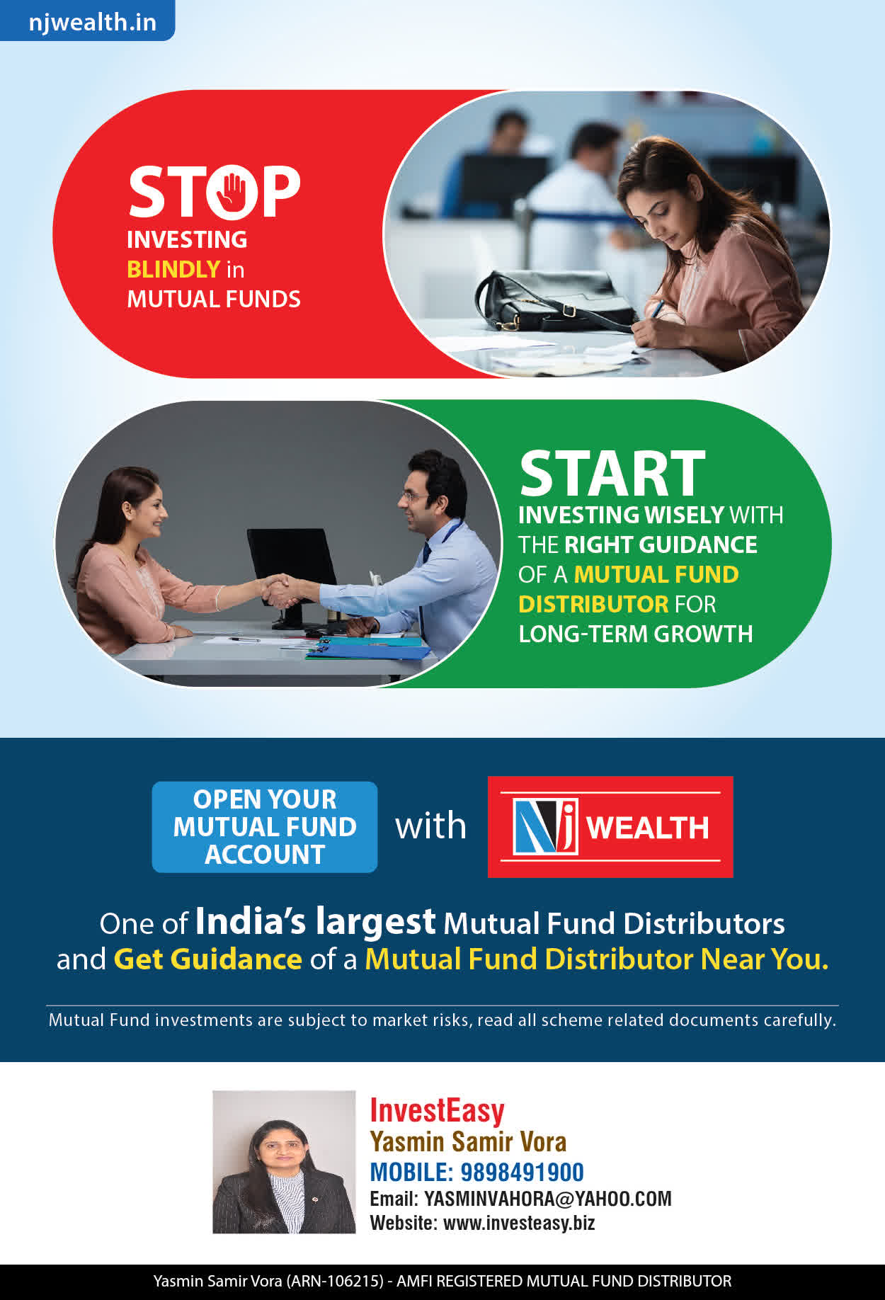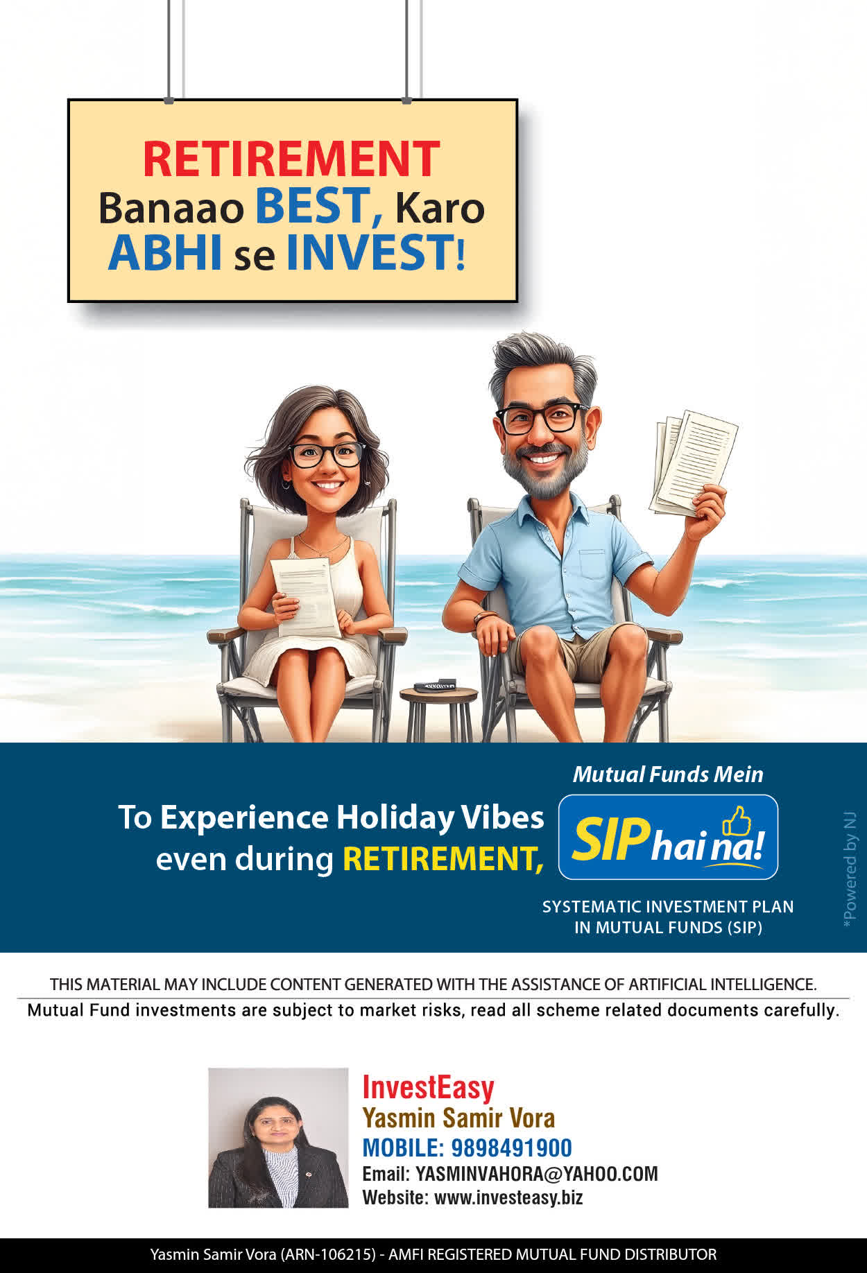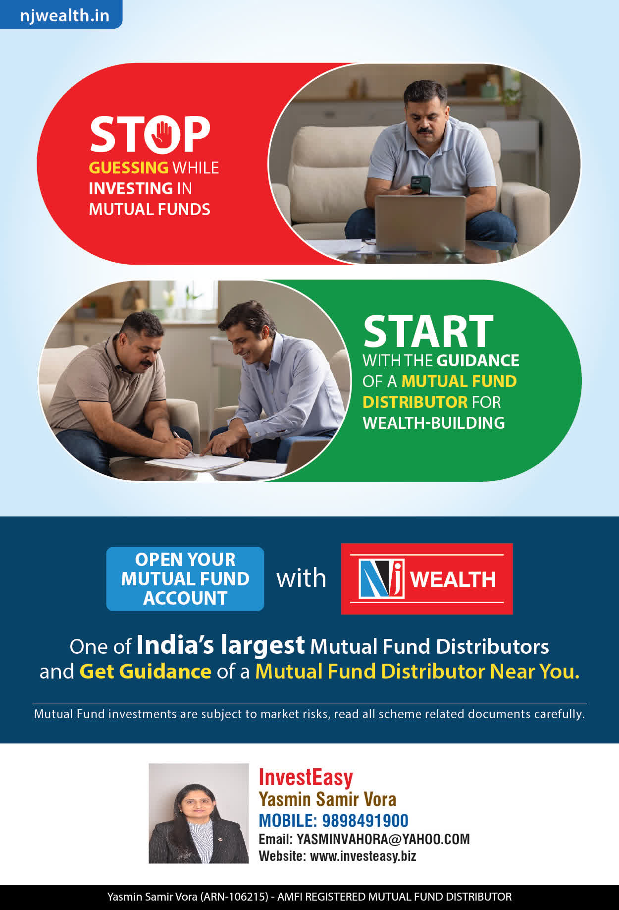 At, Invest Easy(Yasmin Vora) our mission is to provide our clients with the best solutions in wealth creation and wealth management. We are driven to provide clients with simple, unbiased and uncluttered professional advice that adds value to their quality of life and results in actionable solutions.