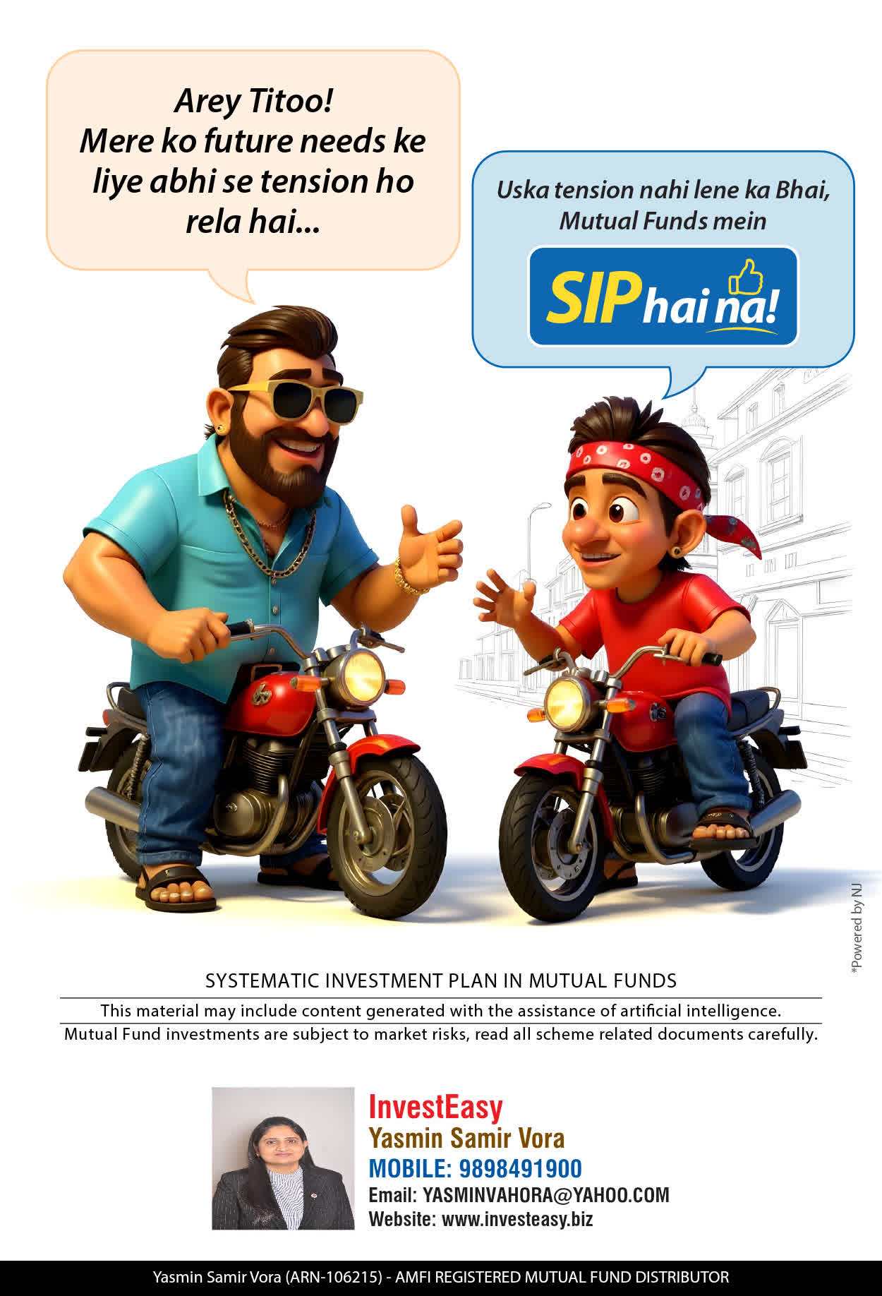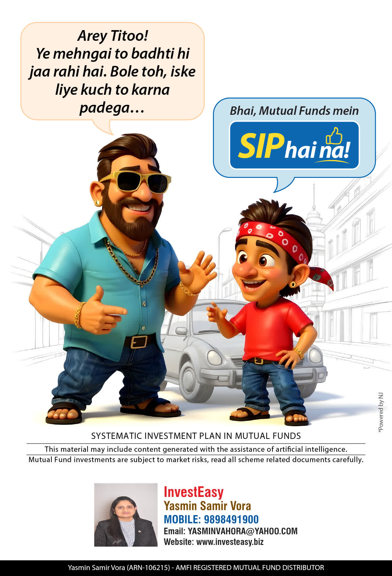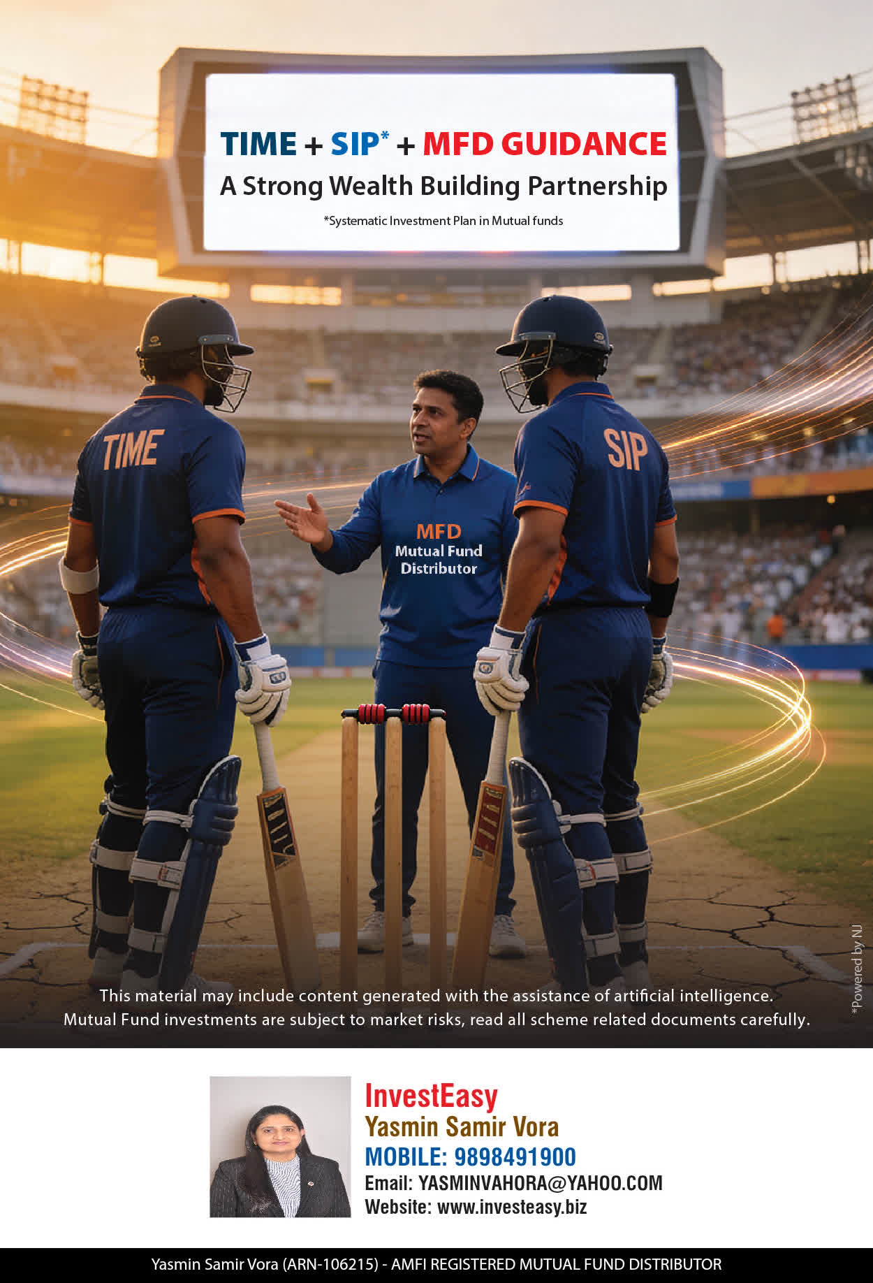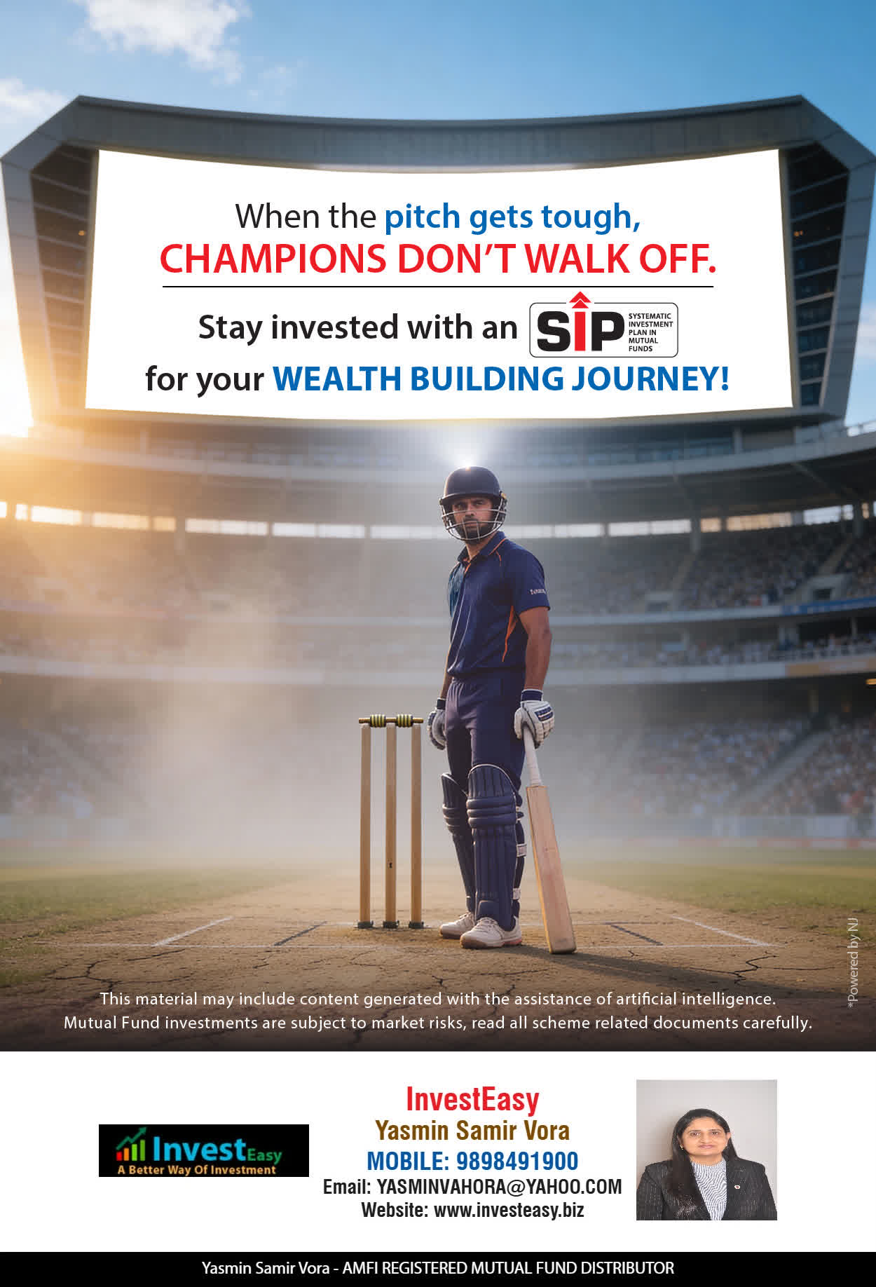 At, Invest Easy(Yasmin Vora) our mission is to provide our clients with the best solutions in wealth creation and wealth management. We are driven to provide clients with simple, unbiased and uncluttered professional advice that adds value to their quality of life and results in actionable solutions.